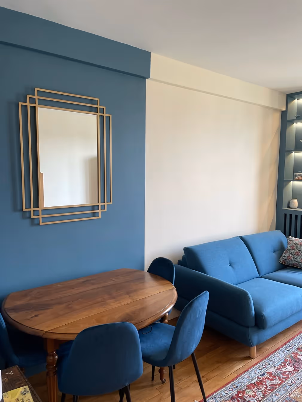 Le projet s’est conclu par un rafraîchissement général : ponçage du parquet, peinture complète et changement du sol de la cuisine, pour apporter modernité, clarté et continuité esthétique à l’ensemble.