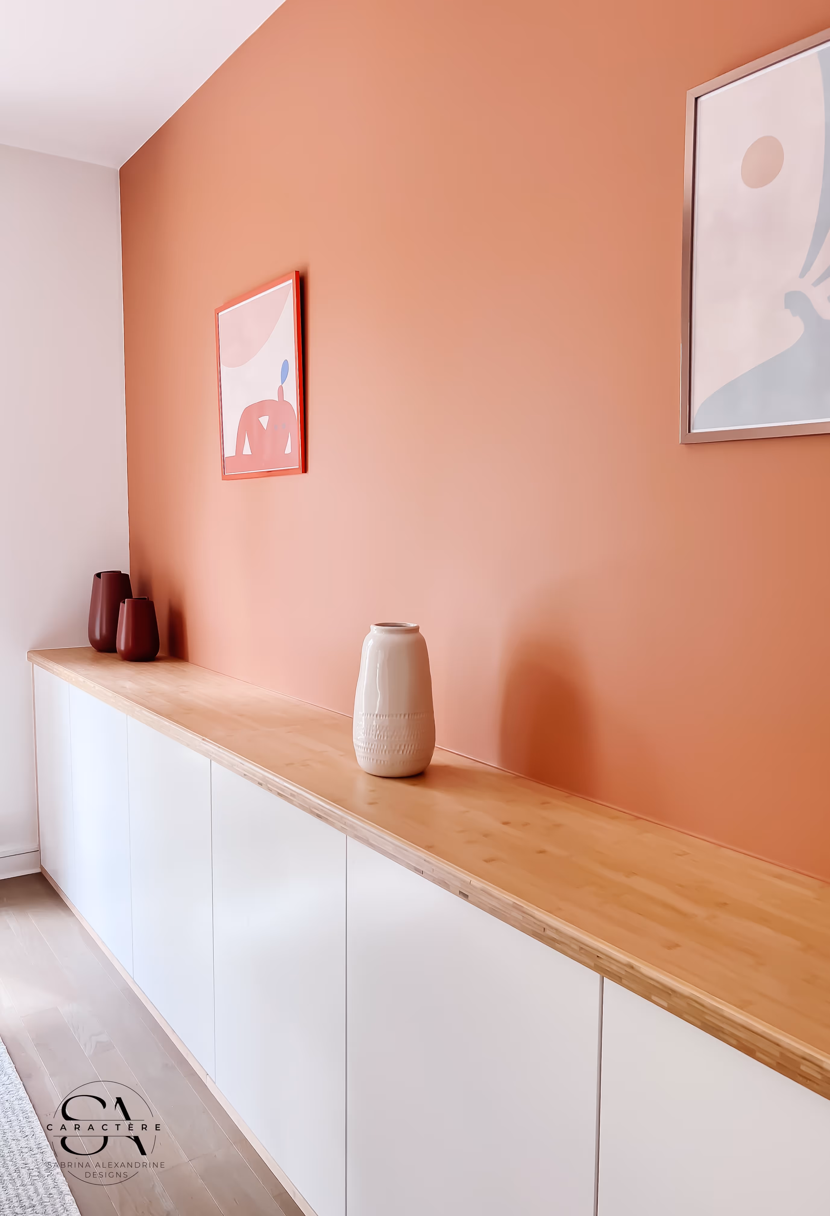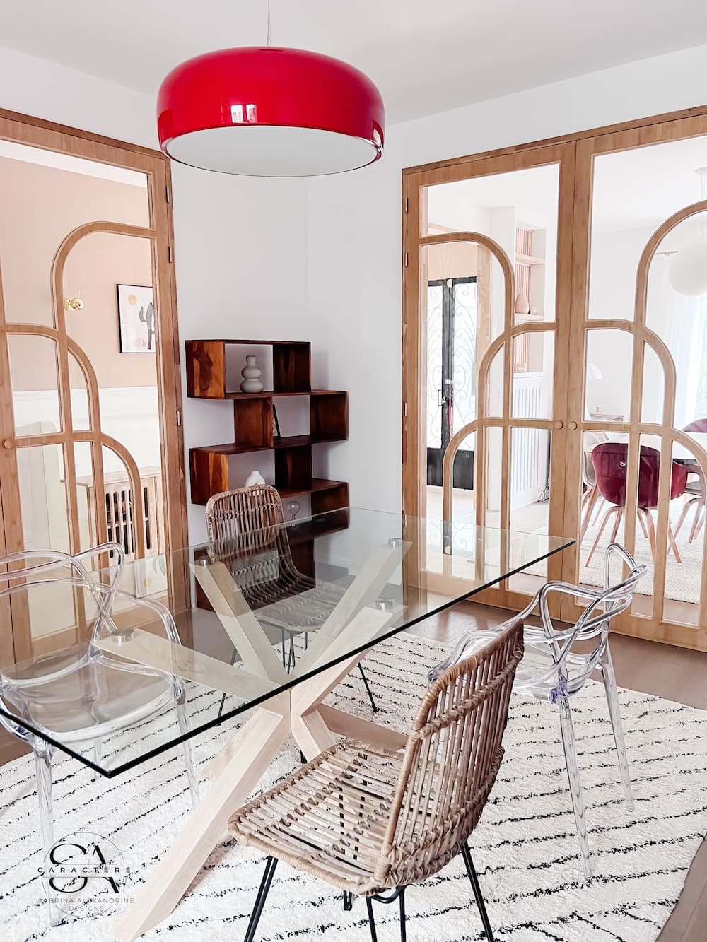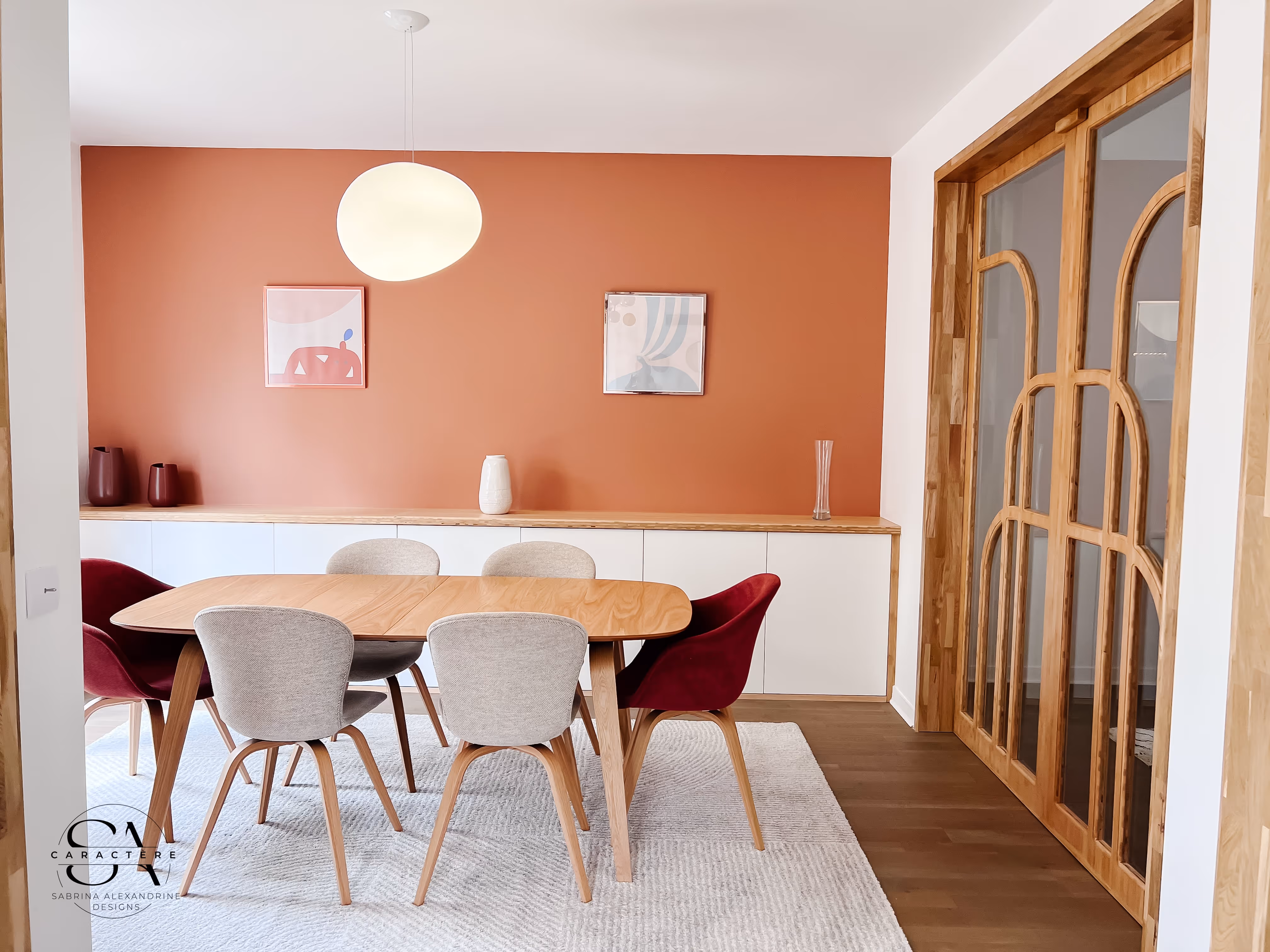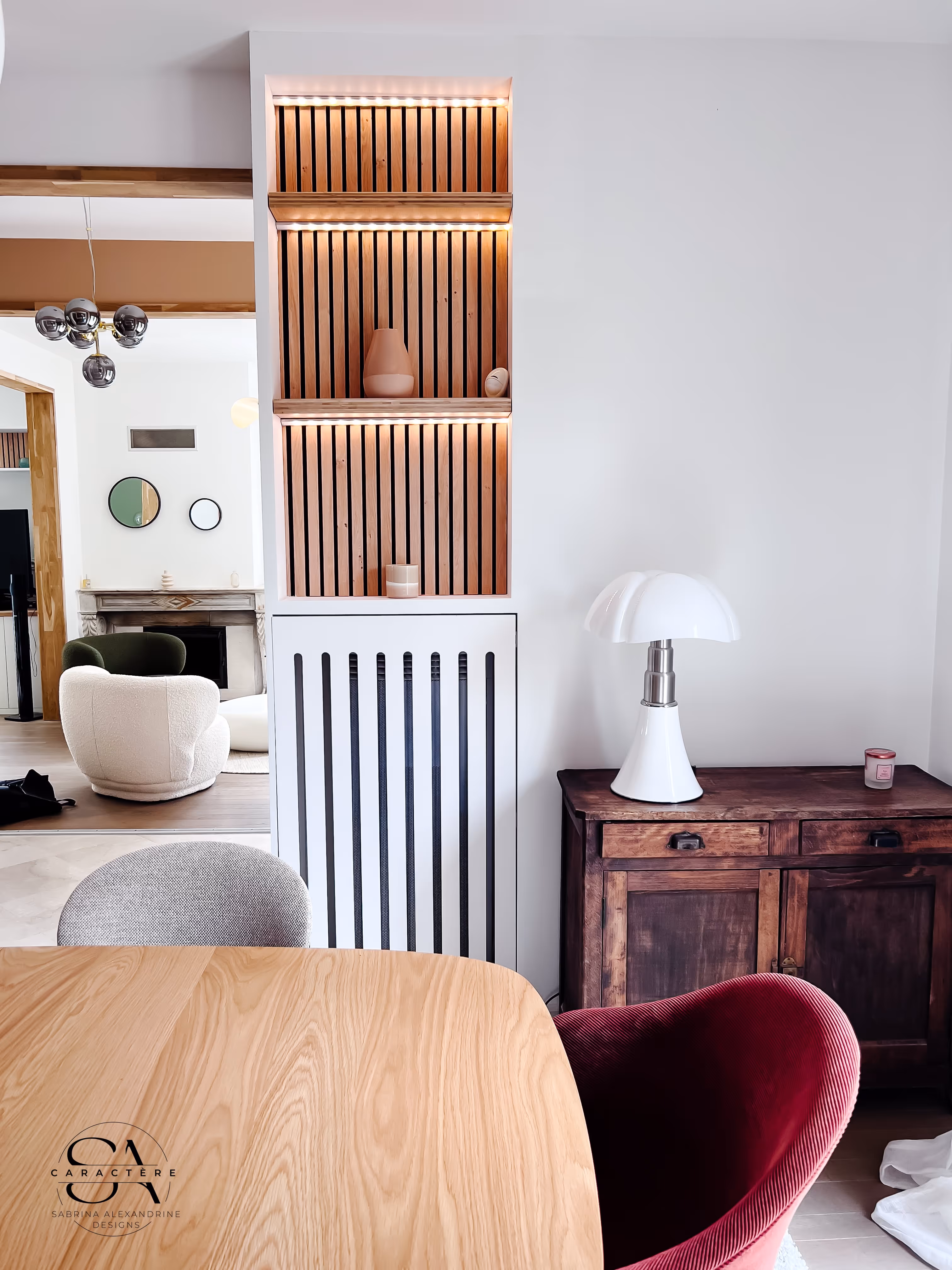 Un premier côté a été pensé dans un esprit Japandi contemporain : lignes épurées, matériaux naturels, et une touche végétale pour accentuer la sérénité. Le second séjour adopte un style moderne-rétro, jouant sur des contrastes plus affirmés pour offrir une ambiance conviviale et chaleureuse.