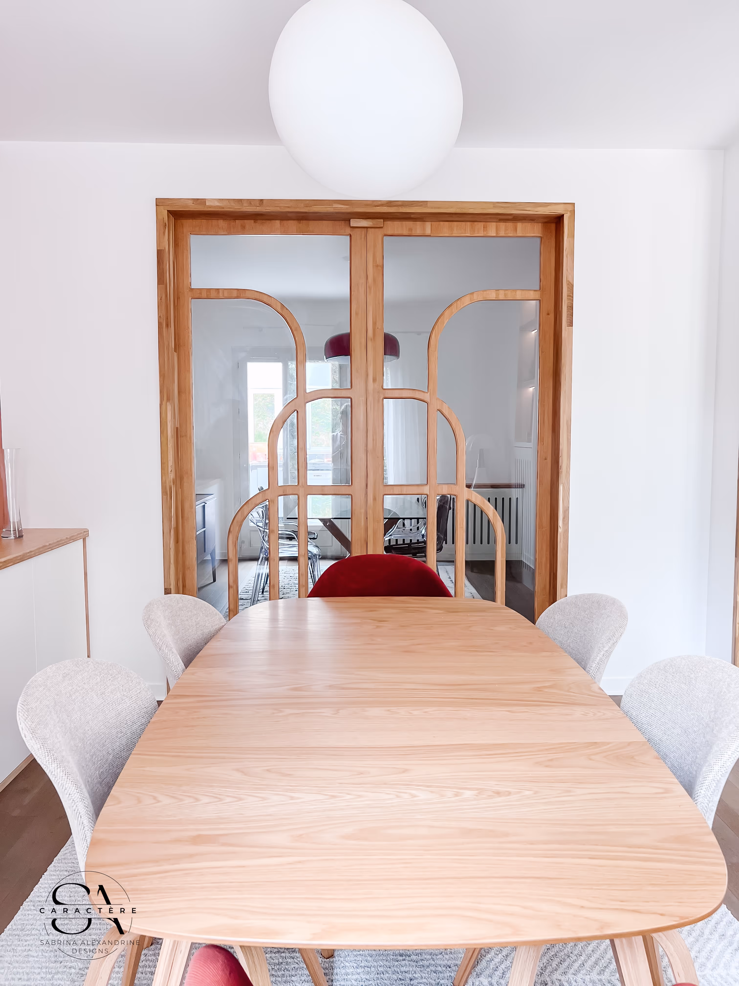 Dans cette maison d’Orsay, le projet avait pour objectif de redonner vie aux espaces de réception : deux salles à manger et deux salons, ainsi qu’une entrée à repenser. L’enjeu principal consistait à redéfinir les zones de vie tout en préservant la luminosité et l’ouverture de la maison.